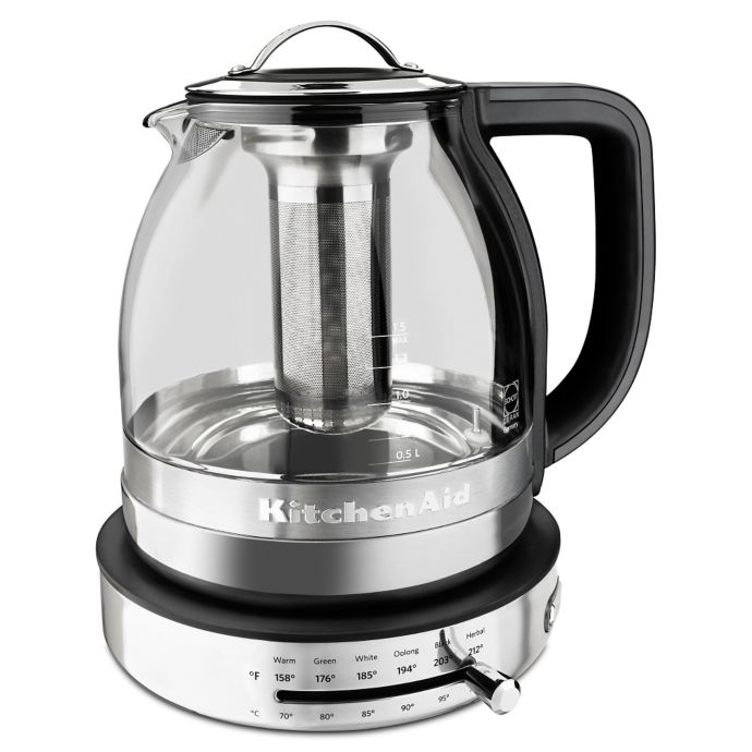 Kitchenaid kek1322ss electric glass tea kettle, 1.5 l, stainless steel. Choose from stovetop and electric hot water kettles that match your needs & kitchen decor. Kitchenaid offers colorful tea kettles designed to quickly boil water for tea, coffee and more in style. Best buy customers often prefer the following products when searching for kitchenaid tea kettle. Designed to match other kitchenaid appliances, you can create an attractive suite. This kettle has been extremely well reviewed by pleased consumers that have praised it for its performance, vibrant color, and its old stovetop design. From the first cup of coffee in the morning to a soothing sip of herbal tea before bed, kitchenaid kettles can help you prepare your favourite drinks. Coffee cagliari 1.75 quart stainless steel whistling tea kettle with color changing exterior. Kitchenaid is made for people who love to cook, and exists to make the kitchen a place of endless possibility. Shop for kitchenaid tea kettle at best buy. There's empire red, cast iron black, almond cream or silvers and whites. Comparison shop for kitchenaid tea kettles home in home. Free delivery and returns on ebay plus items for plus members.
